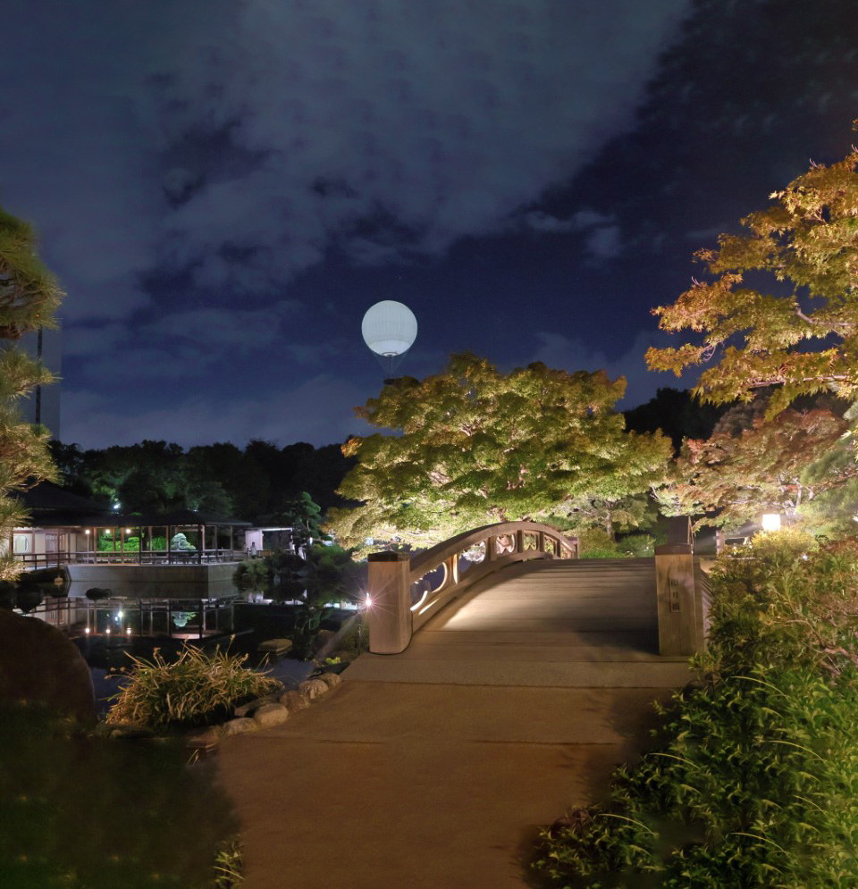 夜の気球からの眺めは、昼とはまったく違う表情を見せます。係留された気球に乗り込み、上空から堺の灯りや日本庭園周辺の光を眺める体験は、わずか数分の間に一気に“非日常”へ連れていく特別な時間。 光に照らされた気球は写真映えも抜群。 安全管理のもと、そよ風を感じながら上昇する瞬間は、子どもから大人まで思わず声が出るほど感動的です。 ※天候により中止・短縮される場合があります。